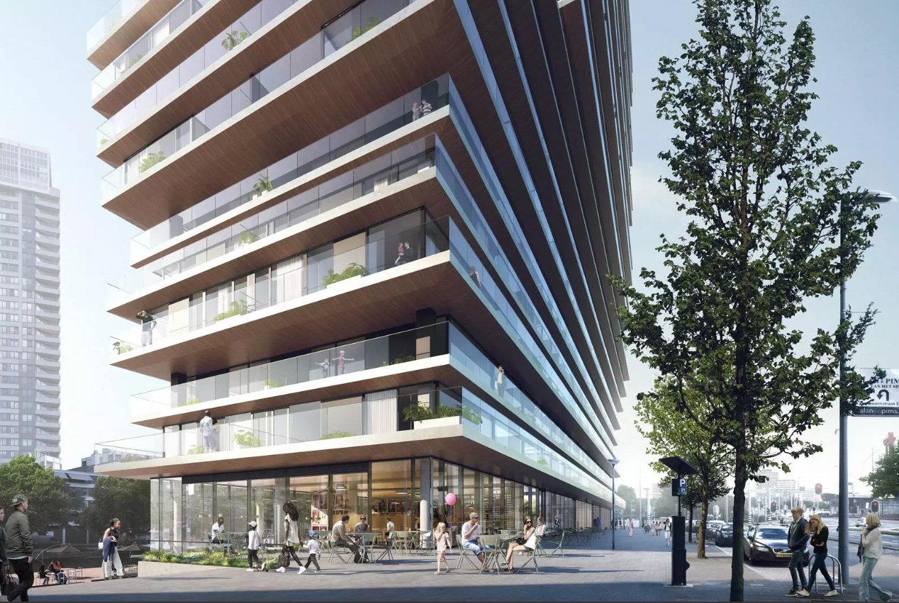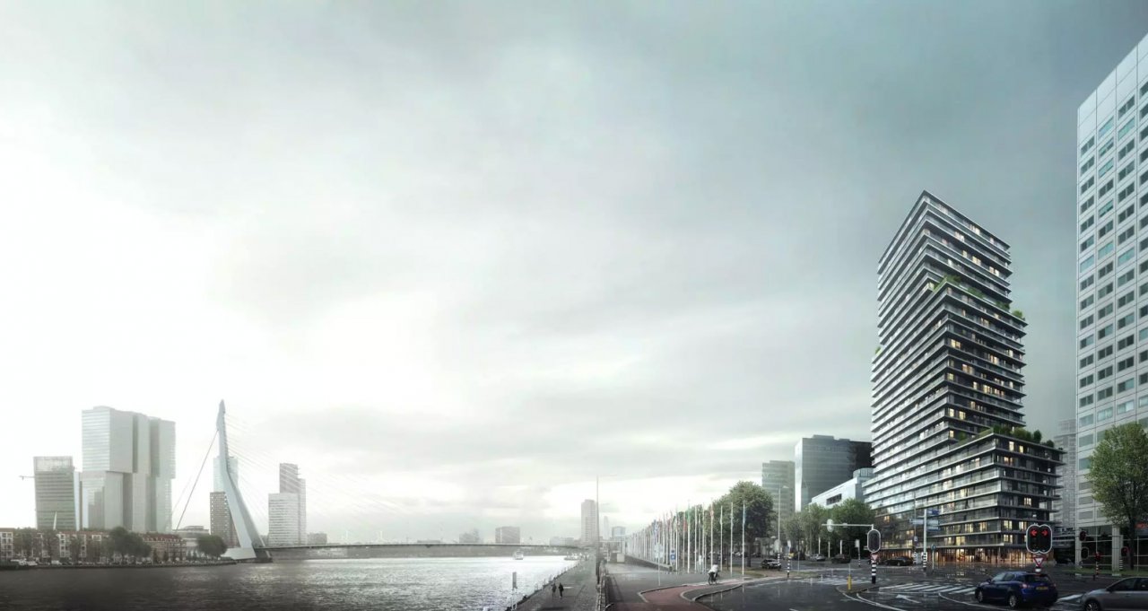The Terraced Tower aan de oever van de Maas in Rotterdam is uniek. Een meesterwerk waar de appartementen speels verlopen. Er is keuze uit zicht op de stad of de rivier. De lichte en ruime appartementen met terras bieden de bewoners een schilderachtig uitzicht dat nooit gaat vervelen. The Terraced Tower biedt 86 koopappartementen en 258 huurappartementen.